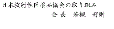 日本放射性医薬品協会は、医薬品と放射能の両方を同時に扱う放射性医薬品に関わる企業団体として、時世に応じ刻々と変化する医療構造や医療ニーズを的確に捉えて柔軟に対応し、ラジオアイソトープの利点を生かした放射性医薬品の開発や供給体制の整備、リスクに対応した安定供給の継続、関係法令の遵守、新しい技術に伴う使用環境の整備、などを通じて国民医療の向上に取り組んでまいります。